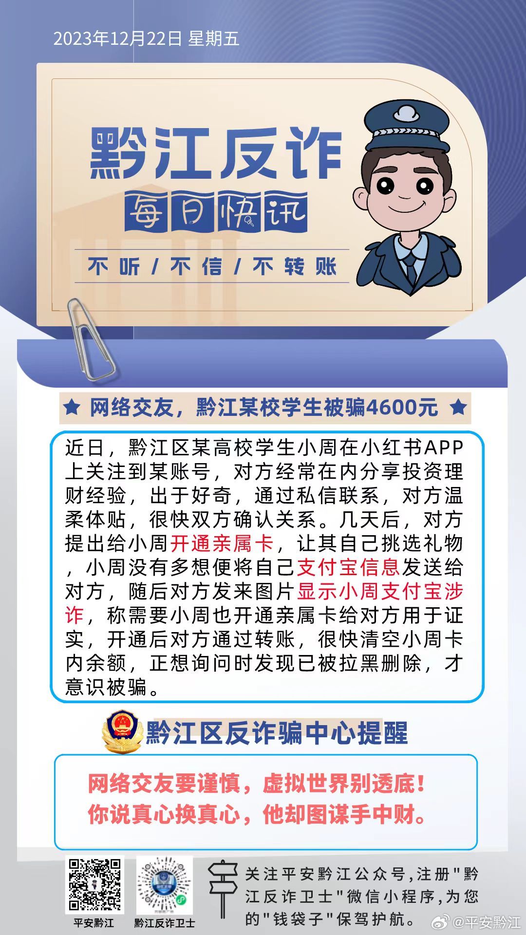 1、保持警惕:遇到涉及金錢交易的信息,務(wù)必核實對方身份。