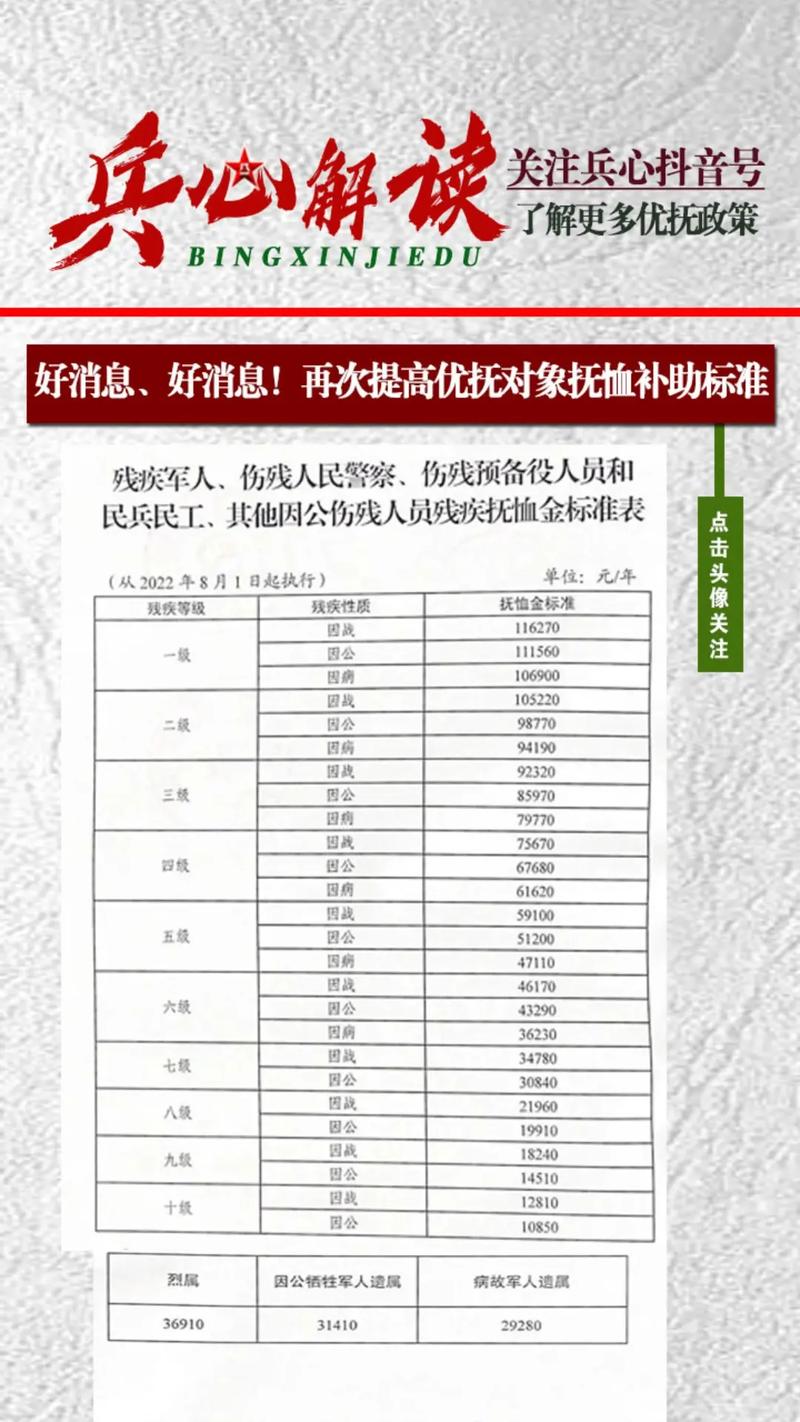 隨著社會(huì)的進(jìn)步與發(fā)展,對(duì)于弱勢(shì)群體的關(guān)懷與支持日益受到重視,殘疾軍人作為國(guó)家的驕傲和時(shí)代的楷模,他們的事跡和犧牲精神值得我們永遠(yuǎn)銘記,為了向他們表達(dá)敬意和關(guān)懷,我國(guó)針對(duì)殘疾軍人推出了一系列優(yōu)撫政策,本文將詳細(xì)介紹這些政策的背景、重要事件、影響及其在特定時(shí)代中的地位,并重點(diǎn)關(guān)注2025年殘疾軍人最新優(yōu)撫政策的具體內(nèi)容和實(shí)施情況。