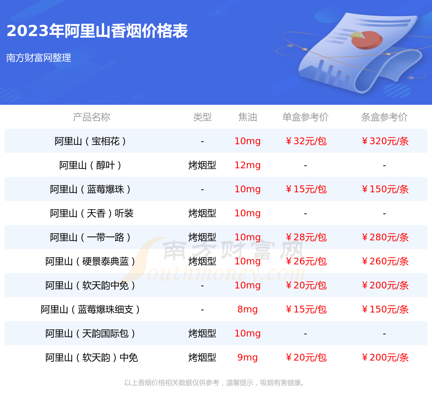 摘要:本文介紹了阿里山煙的價格表和圖片,深度探索阿里山煙的世界。通過提供詳細的價格表和圖片,讓讀者了解阿里山煙的多樣性和品質(zhì)特點。阿里山煙以其獨特的口感和品質(zhì)贏得了廣大煙民的喜愛,本文旨在為讀者提供一個全面的阿里山煙了解渠道。